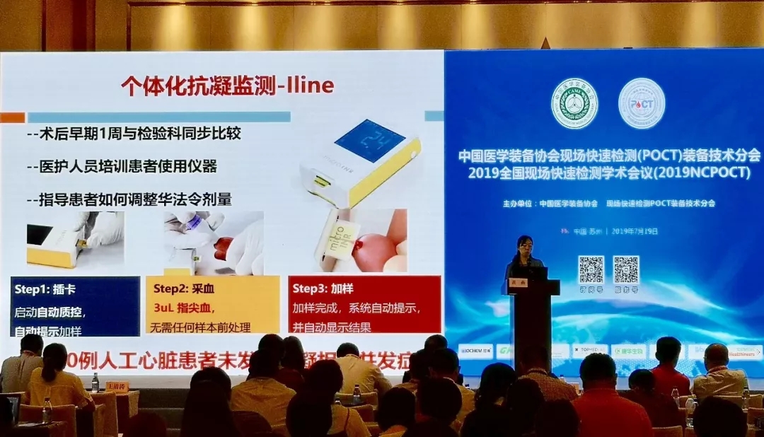黄燕主任作《人工心脏患者抗凝现状与展望》专题演讲,以人工心脏辅助装置为切入点,指出心脏患者的主要原因是血栓和凝血的问题,术后服用抗凝华法林药物不当风险非常大,可能导致血栓或出血。黄主任指出,法华林是目前最常用、最经济、最安全的口服抗凝药,正确使用华法林得到准确的INR值进行剂量调整已成为临床医生的重要依据,INR2.0-2.5是中国人工心脏患者的安全范围,未来,还要进一步加强软件智能化数据收集和应用。她表示,个体化抗凝监测仪-iLine可动态化监测INR值,及时避免因抗凝不足或过度而导致的并发症,且移动便携、操作简便,非常方便患者进行长期的自我监测,保证患者拥有安全的治疗环境。