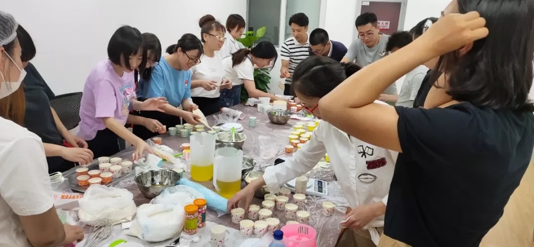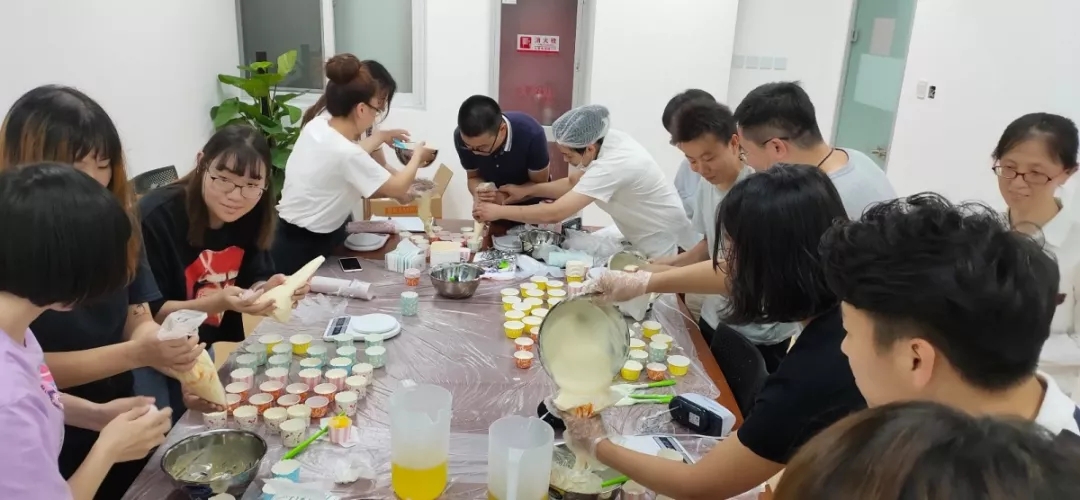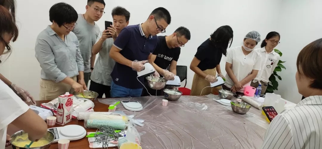 2019年8月30日下午,为了凝聚力量,感悟倍肯人的团队精神,倍肯科技人力资源与企业管理部举办了烘焙蛋糕团建活动。许多同事大多第一次接触烘焙,心里满满地都是期待,跃跃欲试。 在烘焙老师简单的讲解下,大家迫不及待开始蛋糕的制作。四人一组,有人负责打奶油,有人负责称重量,还有人负责调比例。虽然刚开始大家状况百出,但渐渐地蛋糕也越做越好看了,看着自己亲手做的蛋糕,真的是成就感满满呢!当然这也少不了大家的相互协作。
