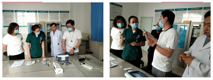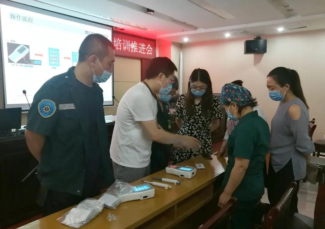 初夏时节,朔州大地山峦叠翠,一派生机盎然,怀仁的胸痛中心建设正如火如荼有序开展。6月6日,胸痛中心第三次培训推进会在医院会议室举行,特邀倍肯科技工程师讲解POCT设备操作技能,急诊科、心内科以及各乡镇卫生院的医护人员30余人参加了培训。院方胸痛中心医疗总监马副院长表示,希望通过此次培训,进一步提高医护人员对医疗设备的操作使用熟练度,规范设备日常保养,更好地为胸痛患者服务。