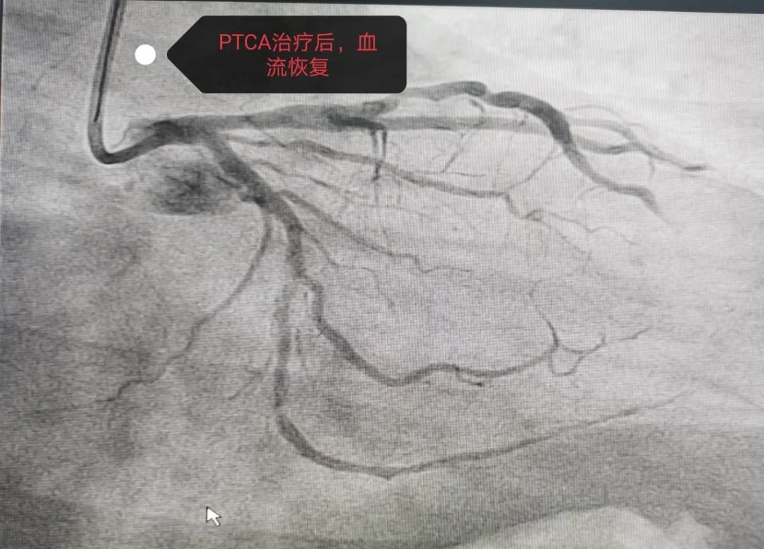 7月19日,前来医院体检的马某在检查冠状动脉造影时,显示左冠右冠分别有不同程度狭窄,冠狭窄50%左右,左回旋支全闭塞。院方立马与家属谈话同意治疗,给予NS导丝很难通过血管,又给予Fielder XT通过,判断出血管钙化严重,放支架不是最好的效果,便实施了PTCA球囊扩张治疗。经过介入团队2个半小时的努力,最终使患者受益,手术当下达到了最好的效果。患者亲属多有心脏搭桥手术,自身支架植入手术后无特殊症状,只是偶尔牙痛放射至心前区不适,本次手术后感觉轻松了很多。