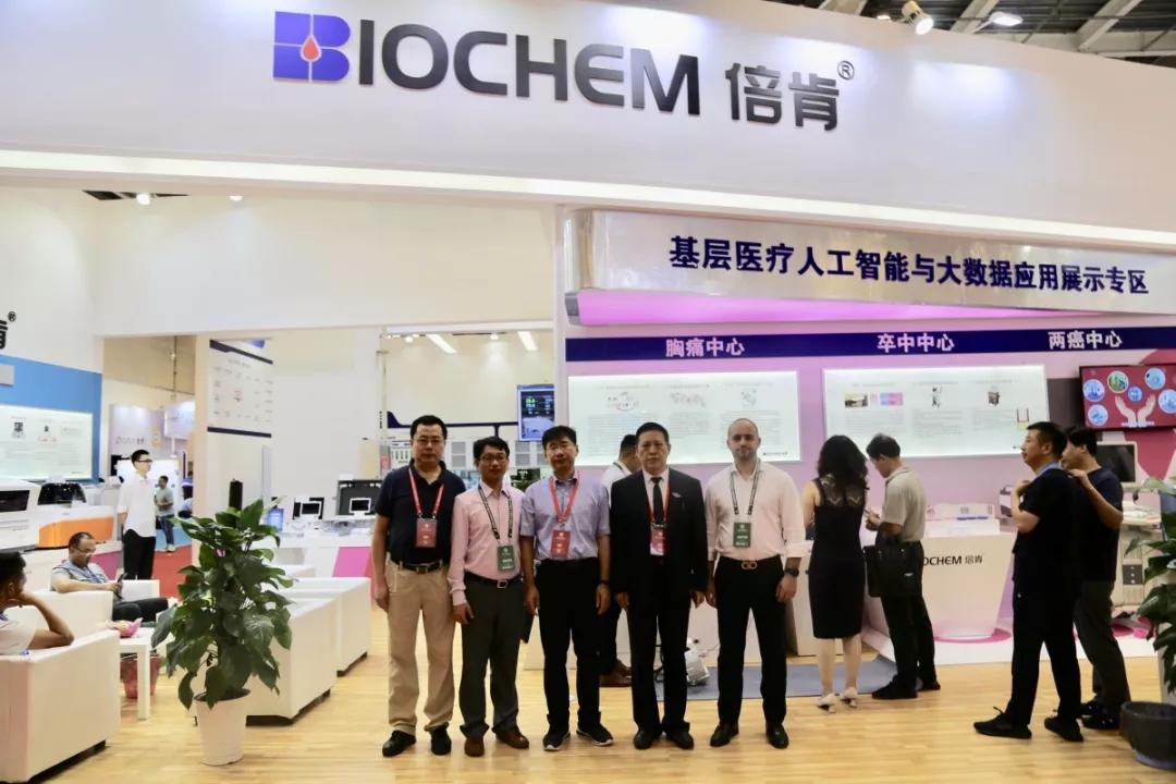 随后,中国医学装备协会副理事长侯岩、中国医学装备协会副秘书长董书魁、中国医学装备协会超声装备技术分会会长钱林学等相关领导莅临倍肯科技展台参观指导,深入了解基层医疗人工智能与大数据应用展示专区。